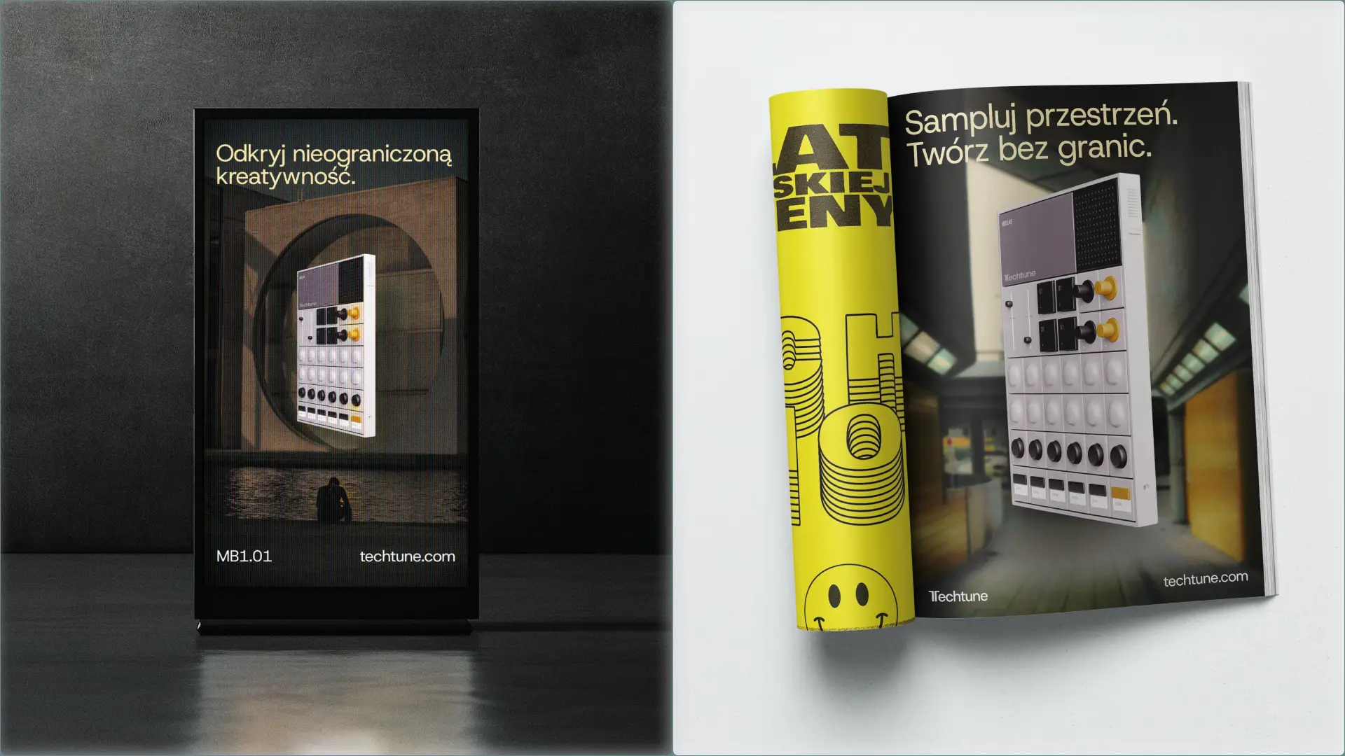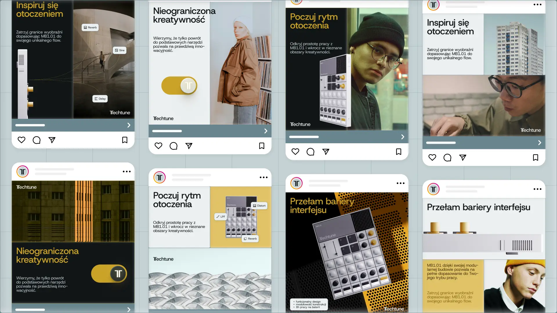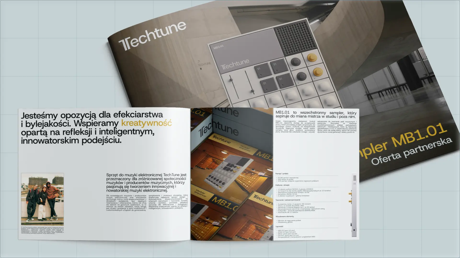 Techtune to producent sprzętu do tworzenia muzyki elektronicznej. Celem projektu było stworzenie spójnej identyfikacji wizualnej, która odda wartości marki: minimalizm, solidność, modularność i wyróżni ją na tle konkurencji. Projekt miał połączyć estetykę inspirowaną zasadami Dietera Ramsa z kreatywnym światem twórców dźwięku.